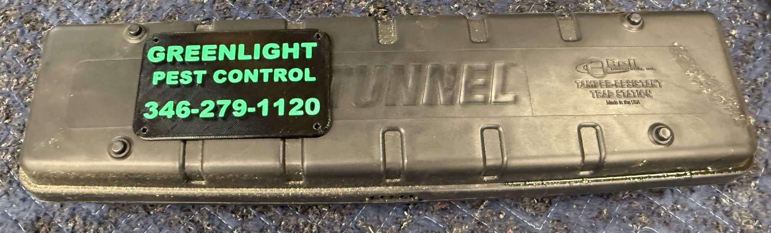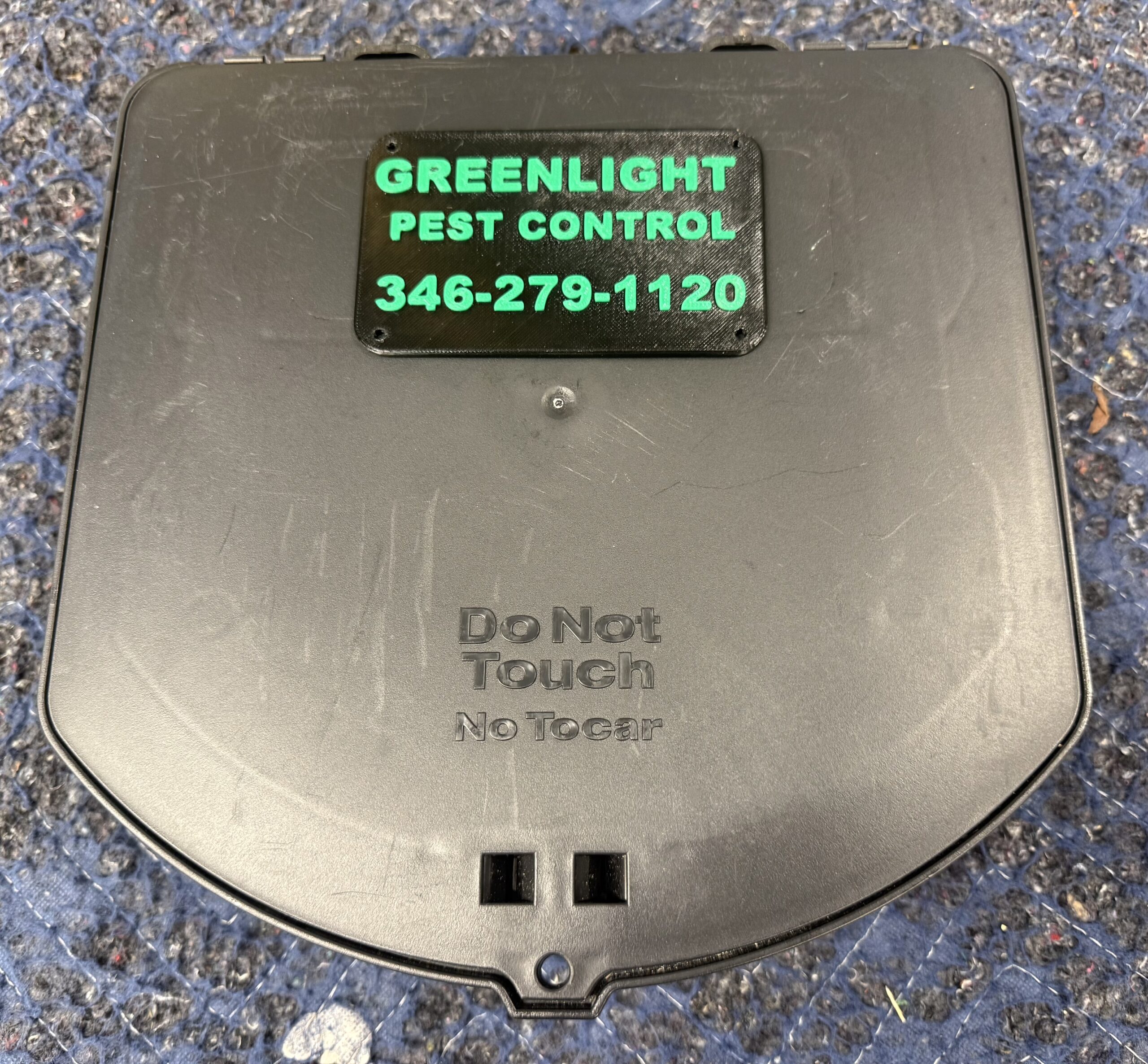 Use an adhesive compatible with PETG plastic and the material your bait station is made from. We recommend E6000 as an adhesive.