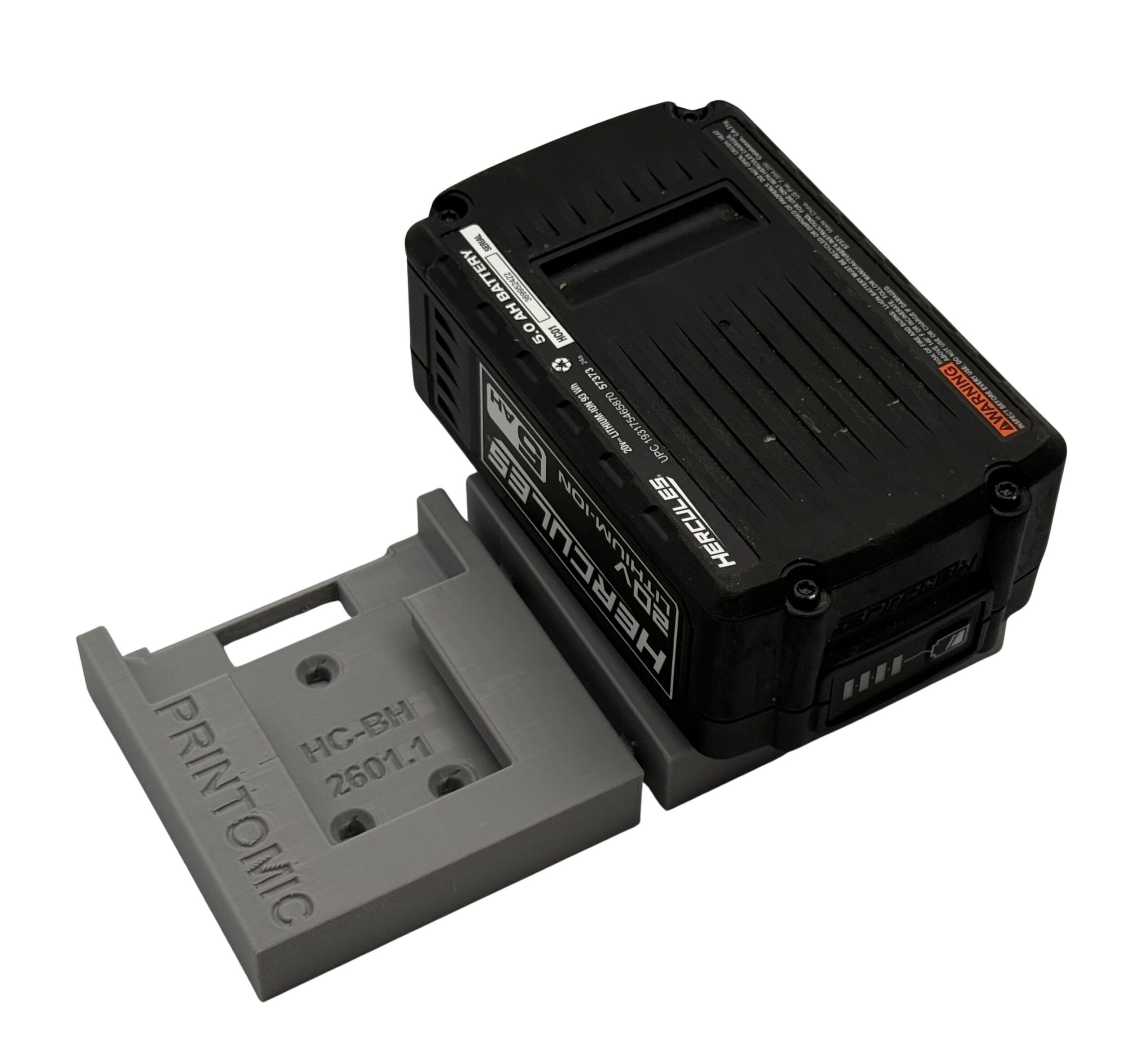 The Printomic™ brand Latching Twin Battery Holder for Hercules® 20V or 12v battery provides a dedicated, secure storage location for two batteries. Batteries slide into the holder and lock into place with a positive latch, keeping them secure until you’re ready to use them.