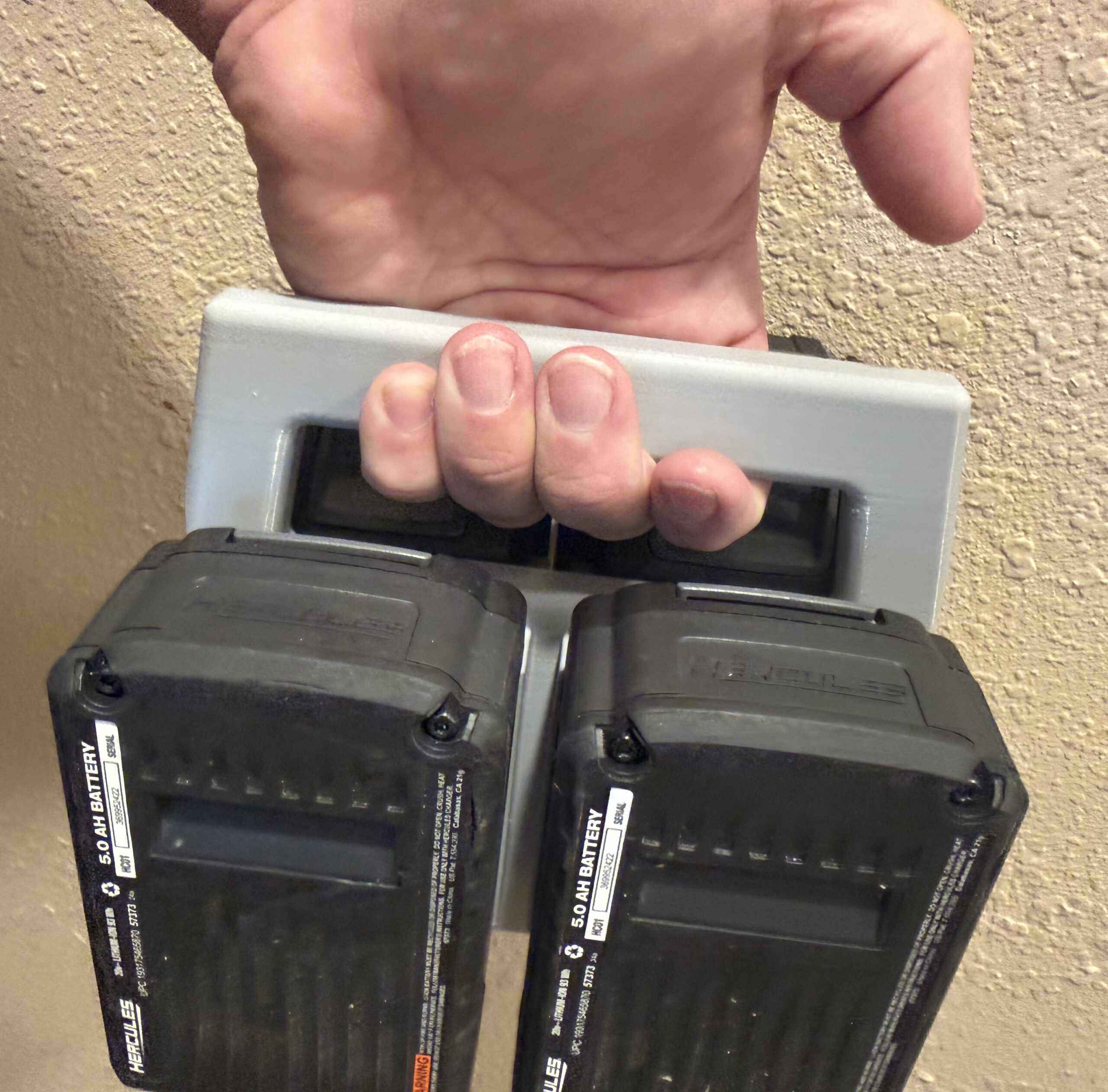Each battery slides in like it does on the tool and snaps in using the OEM lock tabs, so it’s a snug, positive-latch fit that won’t rattle around or fall out in a trailer or truck. It’s compatible with multiple Hercules® 20V or 12v battery sizes since it keys off the same slide/lock geometry.