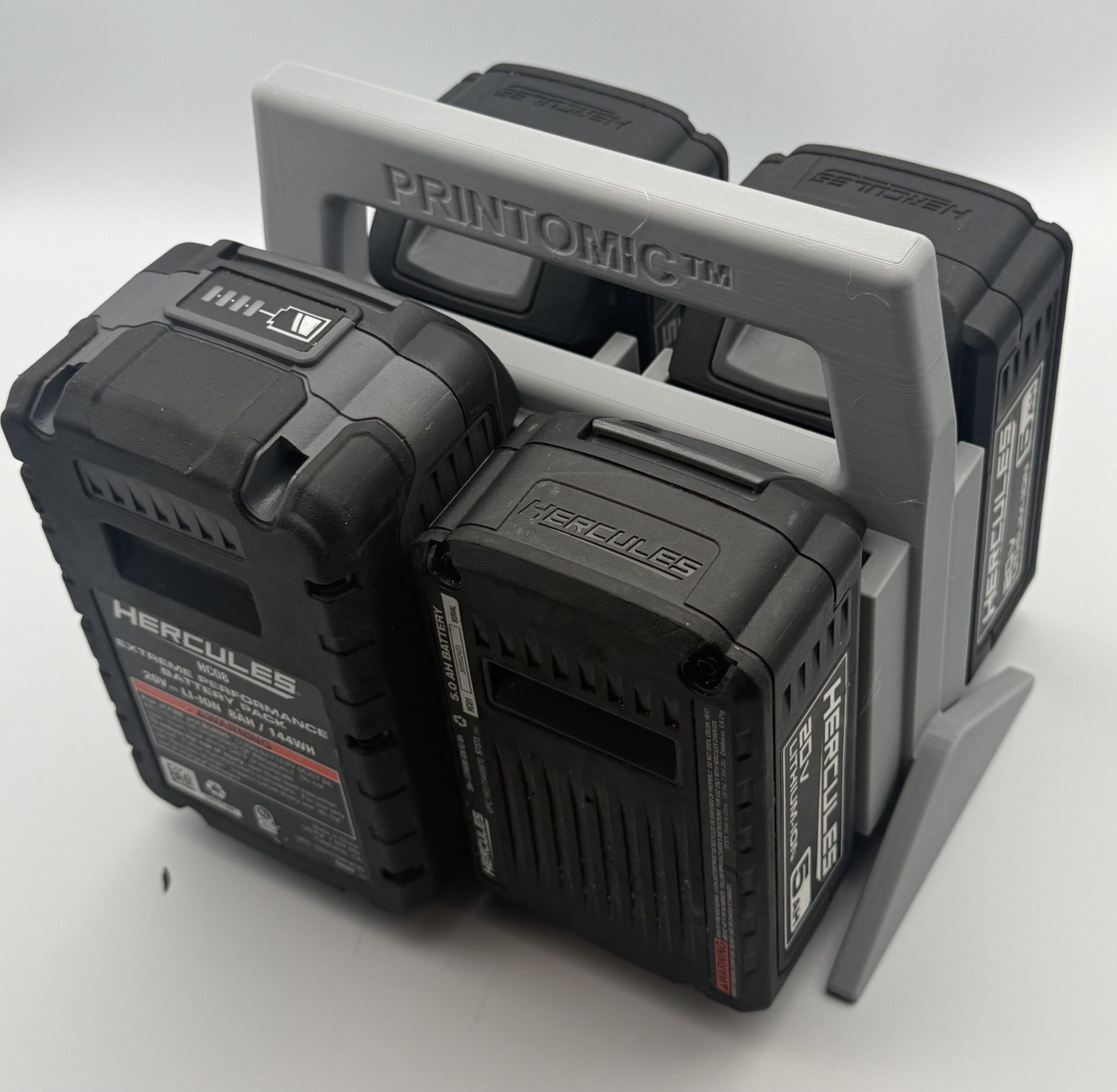 Printomic™ 4-Slot Battery Caddy for Hercules® 20V or 12v batteries gives you a dedicated, secure place to store and mount your batteries—without the wobble, rattle, or “close enough” fit you get from generic holders.